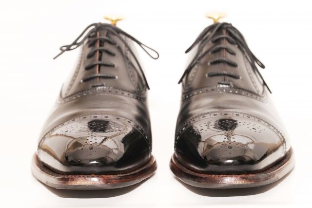 皮革の毛穴まで綺麗になったところへお靴に適した靴クリームを塗布し皮革への栄養補給、補色をさせて頂きましたのち鏡面磨きをいたします。